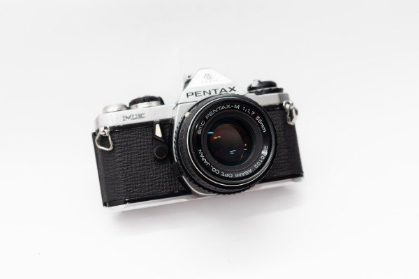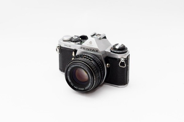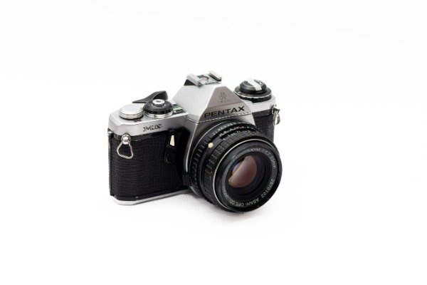 Réflex electrónica de avance manual y lentes intercambiables.