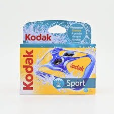 Cámara descartable Kodak sumergible (35mm). Rollo de ISO 800 y 27 exposiciones. Sumergible hasta 15 metros.
